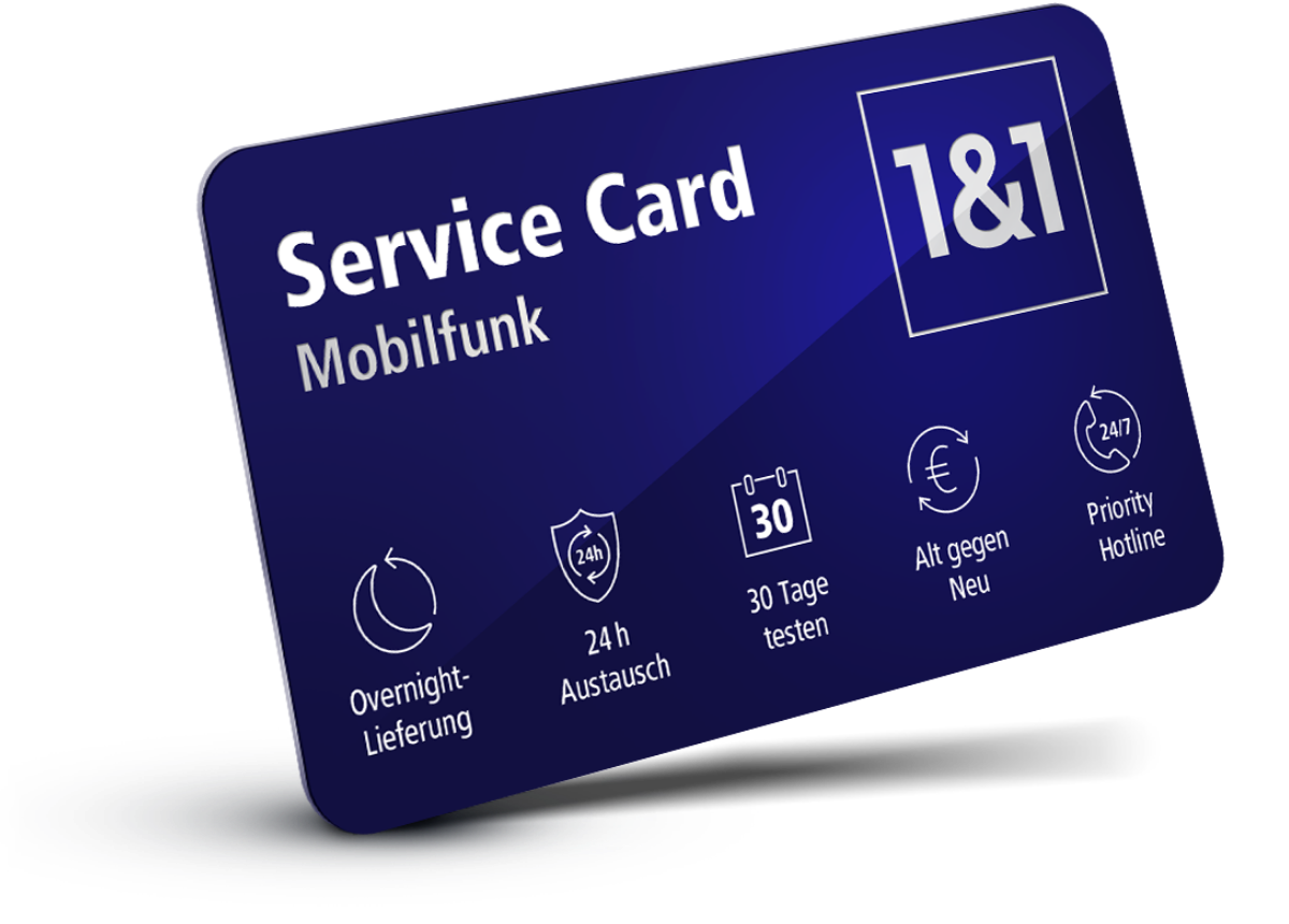 24 h Austausch-Service: Gilt für Smartphones in Verbindung mit der 1&1 All-Net-Flat und nur mit gleichzeitiger Vertragsverlängerung (24 Monate) sowie Rückgabe des defekten Gerätes. Gilt nicht bei mutwilligen Schäden. Austausch in selbstverschuldeten Fällen nur einmal innerhalb der vergangenen 4 Wochen. Der Service umfasst nicht Geräte, die als kostenlose Beigabe oder als Zweitgerät im Rahmen einer Aktion zusätzlich ausgegeben wurden. Es gelten die weiteren Servicebedingungen.