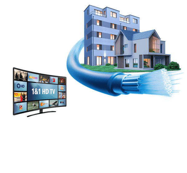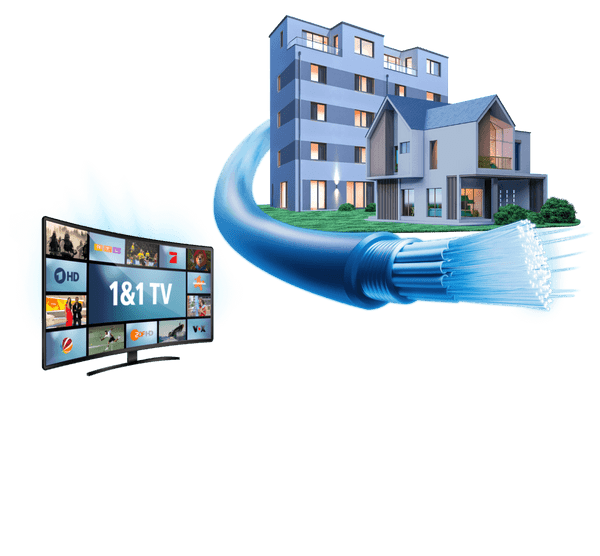 1&1 TV für 0 €/Monat statt 4,99 €/Monat nur mit 1&1 Breitbandanschluss ab 50 MBit/s für 10 Monate 9,99 €/Mon., danach 39,99 €/Mon. (DSL) bzw. 24 Monate 29,99 €/Mon., danach 34,99 €/Mon. (Glasfaser). Glasfaser-Tarife in vielen Regionen möglich. Ggf. Glasfaser-Ausbau und Eigentümergenehmigung erforderlich. Aktion: Baumaßnahmen kostenfrei. Für alle Tarife gilt: Surfen bis zu 50 MBit/s. oder tarifabhängig höher. Telefon-Flat: Kostenlos ins dt. Festnetz telefonieren. Anrufe in dt. Mobilfunknetze 19,9 ct/Min. Mögliche Hardware: z. B. 1&1 HomeServer für 4,99 €/Monat. Versand: einmalig 9,90 €. Bereitstellung: einmalig 49,95 € (DSL) bzw. 69,95 € (Glasfaser). Mindestlaufzeit: 24 Monate. 1&1 TV auf Ihrem SmartTV ohne zusätzliche Geräte nutzbar über kostenfreie 1&1 TV und Filme-App (je über TV-App-Store), z. B. Samsung TV (ab Modeljahr 2015), Android TV-Geräte (ab Version 9.0, 2018ff.), z. B. Philips, Sony, Toshiba u.a. und LG (ab WebOS 4, 2018ff.), je Stream über Internetanschluss. Auch eigener Streaming-Adapter (Apple TV, Amazon FireTV, Google Chromecast) oder Nutzung 1&1 TV-Box (zusätzlich 4,99 €/Mon.) im Heim-WLAN. Google Chromecast ist eine Marke von Google LLC. 1&1 TV (115 Sendern, davon 60 in HD) oder 1&1 HD TV für 1,99 €/Monat (115 Sendern, davon 88 in HD). 1&1 TV endet spätestens mit Beendigung des 1&1 Breitbandvertrags. Änderungen und Irrtümer vorbehalten. Preise inkl. MwSt.