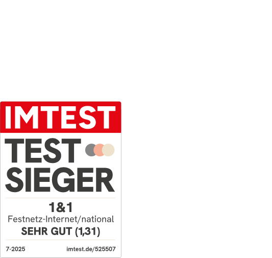 Für alle Tarife gilt: Telefon-Flat: Kostenlos ins dt. Festnetz telefonieren. Anrufe in dt. Mobilfunknetze 19,9 ct/Min. Mögliche Hardware: z. B. 1&1 HomeServer für 4,99 €/Mon. Der Preis fällt zu den zusätzlichen monatlichen Tarifleistungen an, die zusammen mit der Hardware angeboten werden. Versand einmalig 9,90 €. Bereitstellung einmalig 49,95 €. Mindestlaufzeit 24 Monate. Kündigungsfrist 1 Monat zum Ende der Vertragslaufzeit. IMTEST Festnetztest 7/25. connect, Heft 8/2025. Befragung von Privatkunden zu Anbietern, nicht einzelnen Tarifen. Weitere Informationen unter www.1und1.de/test.