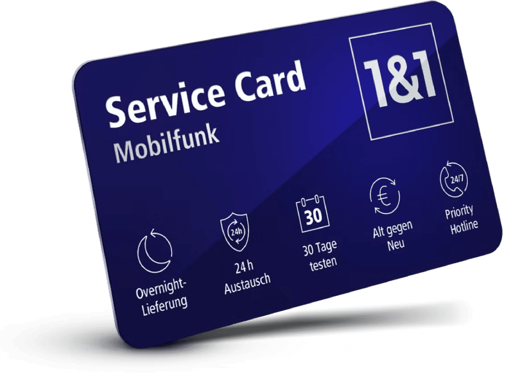 24 h Austausch-Service: Gilt für Smartphones in Verbindung mit der 1&1 All-Net-Flat und nur mit gleichzeitiger Vertragsverlängerung (24 Monate) sowie Rückgabe des defekten Gerätes. Gilt nicht bei mutwilligen Schäden. Austausch in selbstverschuldeten Fällen nur einmal innerhalb der vergangenen 4 Wochen. Der Service umfasst nicht Geräte, die als kostenlose Beigabe oder als Zweitgerät im Rahmen einer Aktion zusätzlich ausgegeben wurden. Es gelten die weiteren Servicebedingungen.
