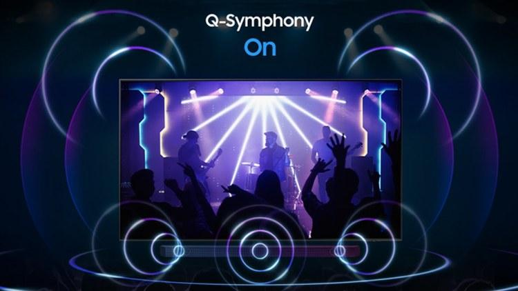Die Q-Symphony-Funktion sorgt dafür, dass TV und Soundbar perfekt aufeinander abgestimmt sind. Überzeugender Surround-Effekt, ohne dass man sich zwischen TV- und Soundbar-Sound entscheiden muss.