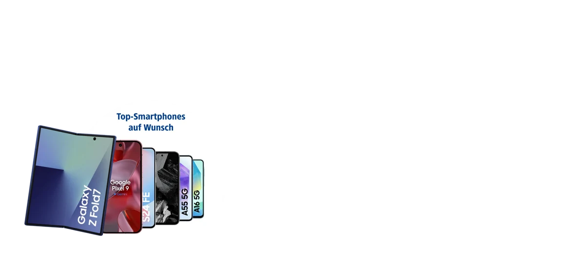 Samsung Galaxy Z Fold7, z.B. der 1&1 All-Net-Flat Business S mit 30 GB Highspeed-Volumen/Monat (bis zu 300 MBit/s im Download/bis zu 50 MBit/s im Upload, nach Verbrauch des monatlichen Datenvolumens je max. 64 kBit/s) dauerhaft für 80,90 €/Monat). Gratis Telefonieren und Surfen gilt nicht für Sonder- und Premiumdienste, Verbindungen aus Deutschland ins Ausland sowie Roaming außerhalb EU gemäß Preisliste. Telefonate in dt. Fest- und Handynetze inklusive sowie Verbindungen innerhalb des EU-Auslands und aus EU nach Deutschland plus Island, Liechtenstein und Norwegen. Bereitstellungspreis je 39,90 €. Je 24 Monate Vertragslaufzeit.