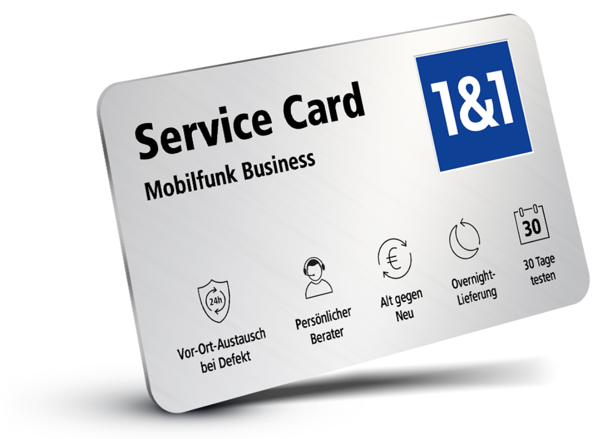 1&1 All-Net-Flat Business S mit 30 GB Highspeed-Volumen/Monat (mit bis zu 300 MBit/s im Download/bis zu 50 MBit/s im Upload, nach Verbrauch des monatlichen Datenvolumens mit max. 64 kBit/s) die ersten 3 Monate 9,90 €/Monat, danach 12,90 €/Monat. Angebot gilt bei Tarifbestellungen ohne Hardware. Gratis Telefonieren und Surfen gilt nicht für Sonder- und Premiumdienste, Verbindungen aus Deutschland ins Ausland sowie Roaming außerhalb EU gemäß Preisliste. Telefonate in dt. Fest- und Handynetze inklusive sowie Verbindungen innerhalb des EU-Auslands und aus EU nach Deutschland plus Island, Liechtenstein und Norwegen. Bereitstellungspreis 19,90 € bei Einfachbestellung, 29,90 € bei Mehrfachbestellung. 24 Monate Vertragslaufzeit.
