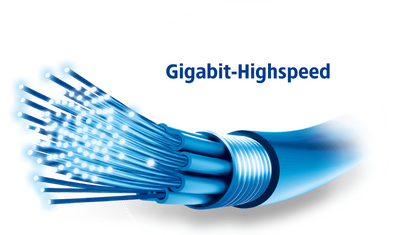 In Glasfaserleitungen werden Daten in Form von Lichtsignalen übertragen. Im Vergleich zu herkömmlichen Kupferkabeln, die mit elektrischen Impulsen arbeiten, erhöhen sich dadurch die Übertragungsgeschwindigkeiten um ein Vielfaches. Perfekt für die stetig steigenden Anforderungen an moderne Kommunikation.