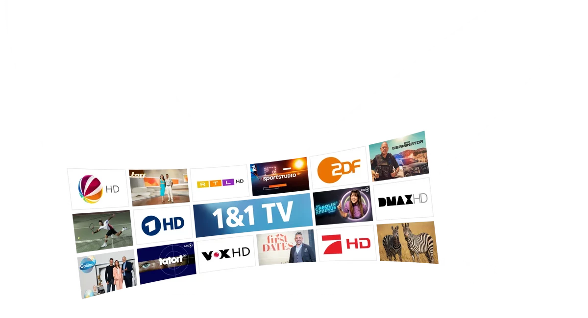 - IPTV-Paket inklusive 1&1 TV, 1&1 HD TV oder 1&1 HD TV plus