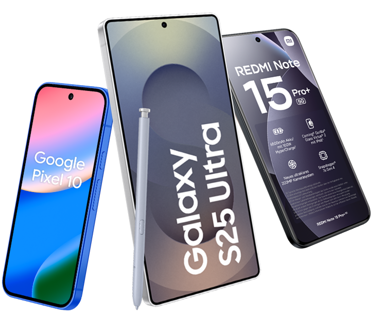 Google Smartphones, z.B. das Google Pixel 10, Pixel 10 Pro oder Pixel 10 Pro XL, z.B. in Verbindung mit der 1&1 All-Net-Flat S und 30 GB Highspeed-Volumen/Mon. (bis zu 300 MBit/s Download/bis zu 50 MBit/s Upload, danach je max. 64 kBit/s) für 37,99 €/Mon. (Pixel 10), 44,99 €/Mon. (Pixel 10 Pro) oder 49,99 €/Mon. (Pixel 10 Pro XL). Mindestvertragslaufzeit je 24 Monate, danach jederzeit kündbar mit 280,– € (Pixel 10), 360,– € (Pixel 10 Pro) oder 420,– € Pixel 10 Pro XL) Einmalzahlung – zahlbar bei Vertragsende, spätestens nach 36 Vertragsmonaten. Oder ohne Einmalzahlung bei Auswahl eines neuen Geräts bei 1&1 und Rücksendung des Altgerätes in gebrauchsfähigem Zustand. Alternativ wird treuen Kunden, sofern der Vertrag nach 36 Monaten noch besteht, die Einmalzahlung im 36. Monat automatisch gutgeschrieben, sodass sie sich auf 0,– € reduziert (Geräterückgabe hierfür nicht erforderlich). Inklusive Telefonate in dt. Fest- und Handynetze sowie Verbindungen innerhalb des EU-Auslands und aus der EU nach Deutschland. Gratis Telefonieren und Surfen gilt nicht für Sonder- und Premiumdienste, Verbindungen aus Deutschland ins Ausland sowie Roaming außerhalb EU gemäß Preisliste. Bereitstellungspreis je 39,90 €.