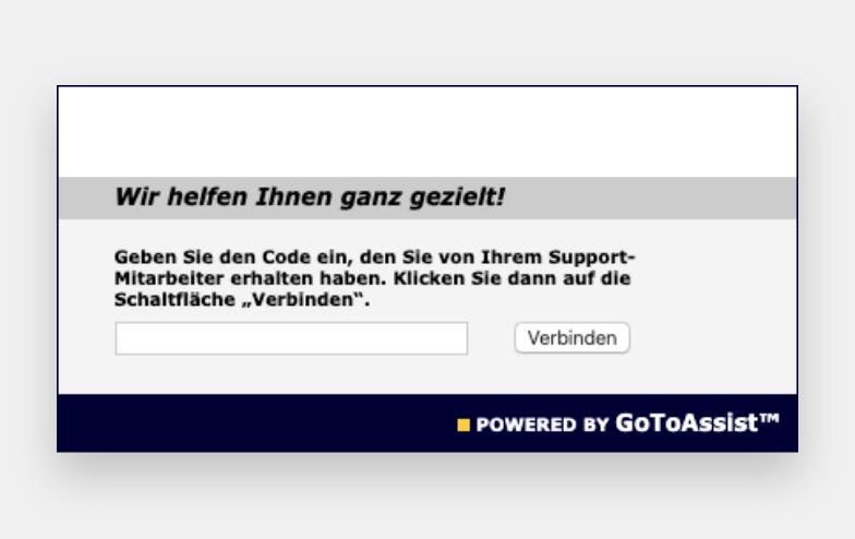 Klicken Sie auf den unten stehenden Button um zur GoToAssist-Webanwendung zu gelangen. Geben Sie dort Ihre persönliche Sitzungsnummer ein.