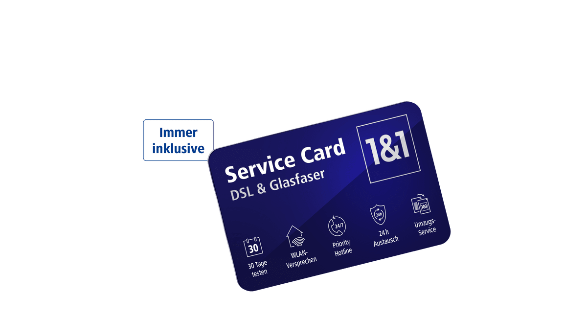 Neben Top-Qualität und günstigen Preisen bietet Ihnen 1&1 zusätzlich exzellente Service-Leistungen, die es so nur bei uns gibt – mit der 1&1 Service Card DSL & Glasfaser.
