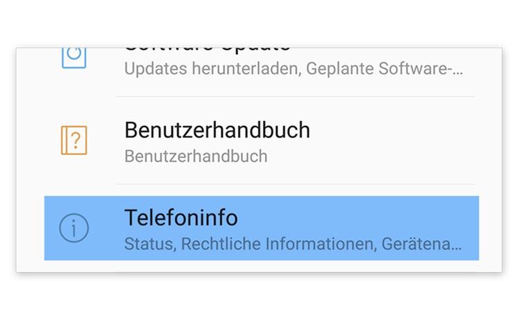 Scrollen Sie bis ans Ende der Einstellungen. Tippen Sie dafür in die Mitte Ihres Bildschirms und wischen Sie mit dem Finger nach oben. Führen Sie diesen Schritt so lange durch, bis Sie am Ende der Seite angelangt sind. Tippen Sie nun auf "Info zu Gerät" oder "Telefoninfo" (der Name der Option kann von Hersteller zu Hersteller variieren, es ist jedoch in den meisten Fällen die letzte Option).