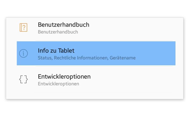 Auf der "Info zu Tablet" Seite können Sie nun den Gerätenamen und die Modellnummer finden.